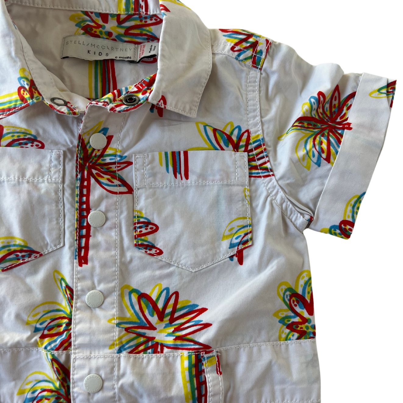Macacão para bebê com estampa floral da marca Stella McCartney.